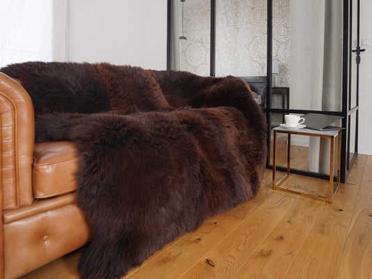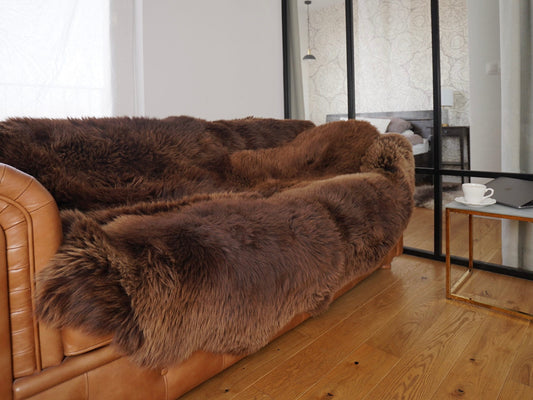 GIANT RUG Sexto SHEEPSKIN Six 80" x 70" Brown Throw Genuine Leather Sheep Skins Decorative rug comfy, cozy, Throw Rugs Carpet gold tones