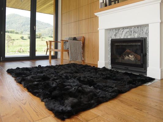Genuine Toscana Lamb Sheepskin Throw Blanket Rug Black Bed Spread Sofa Throw Rug Black Rug Large Rug BL4