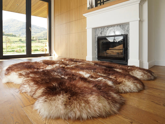 GIANT RUG Sexto SHEEPSKIN Six 80" x 70" Brown Throw Genuine Leather Sheep Skins Decorative rug - White comfy, cozy, Throw Rugs Carpet