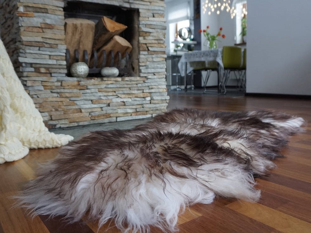 Sheepskin can be a perfect complement to the decor of your apartment. Make your home more cozy and tastefully decorated. It is ideally suited for the fireplace, on a couch or a carpet!